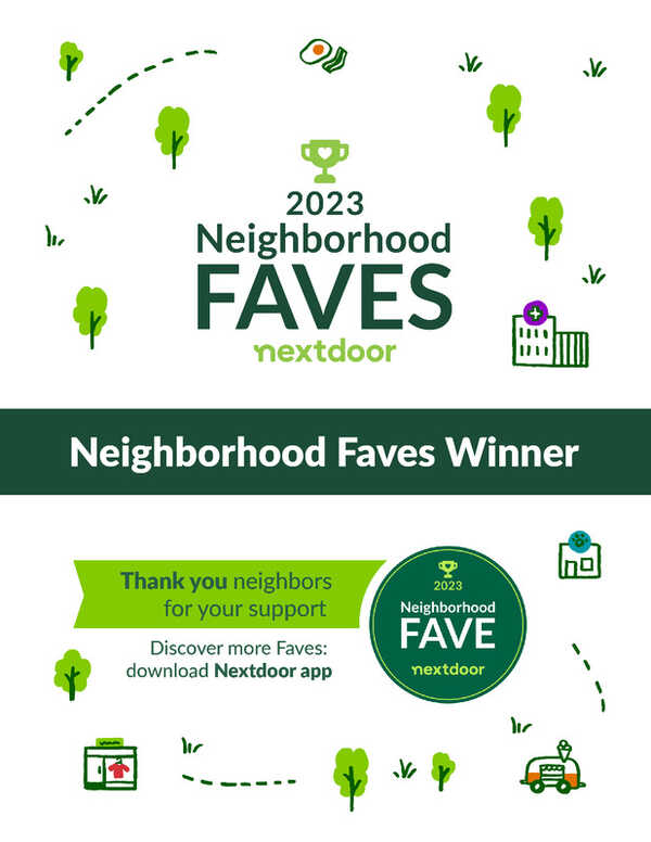 This award means so much to our family and for our business it really helps us continue to grow in our community! Thank you to all of our neighbors! We are honored to be voted a 2023 @Nextdoor Neighborhood Fave.